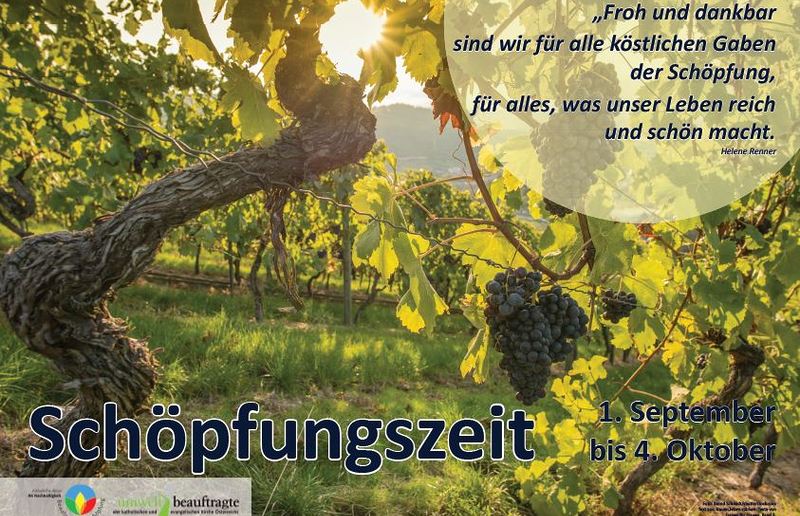 In der ökumenischen „Schöpfungszeit“ vom 1. September bis 4. Oktober sind Pfarrgemeinden eingeladen, die Bewahrung der Schöpfung besonders in den Mittelpunkt zu stellen. Hier finden Sie Gottesdienstvorschläge und einen Fundus an weiteren Materialien für die Gestaltung in Ihrer Pfarrgemeinde. www.schoepfung.at