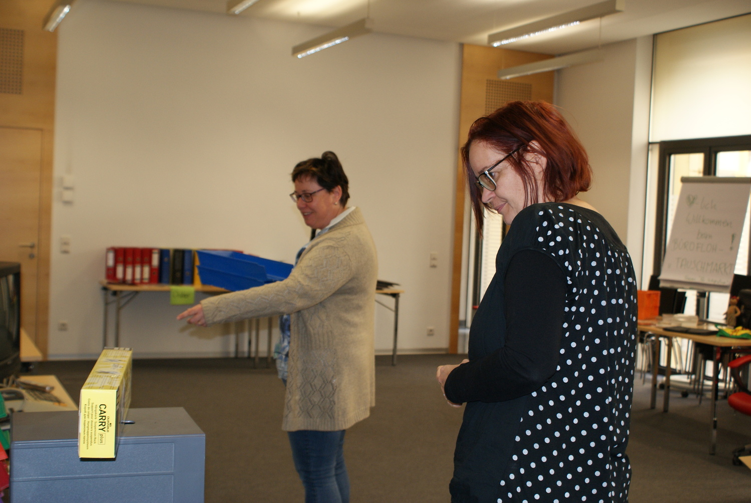 Egal ob Mappen, Kleber, Scheren, Locher, Stifte etc. - alles, was von diversen Abteilungen nicht mehr gebraucht wurde stand zur freien Entnahme im Parterresaal bereit und wartete auf einen neuen Besitzer. So wurde bereits verstaubten Dingen neuer Glanz verliehen.