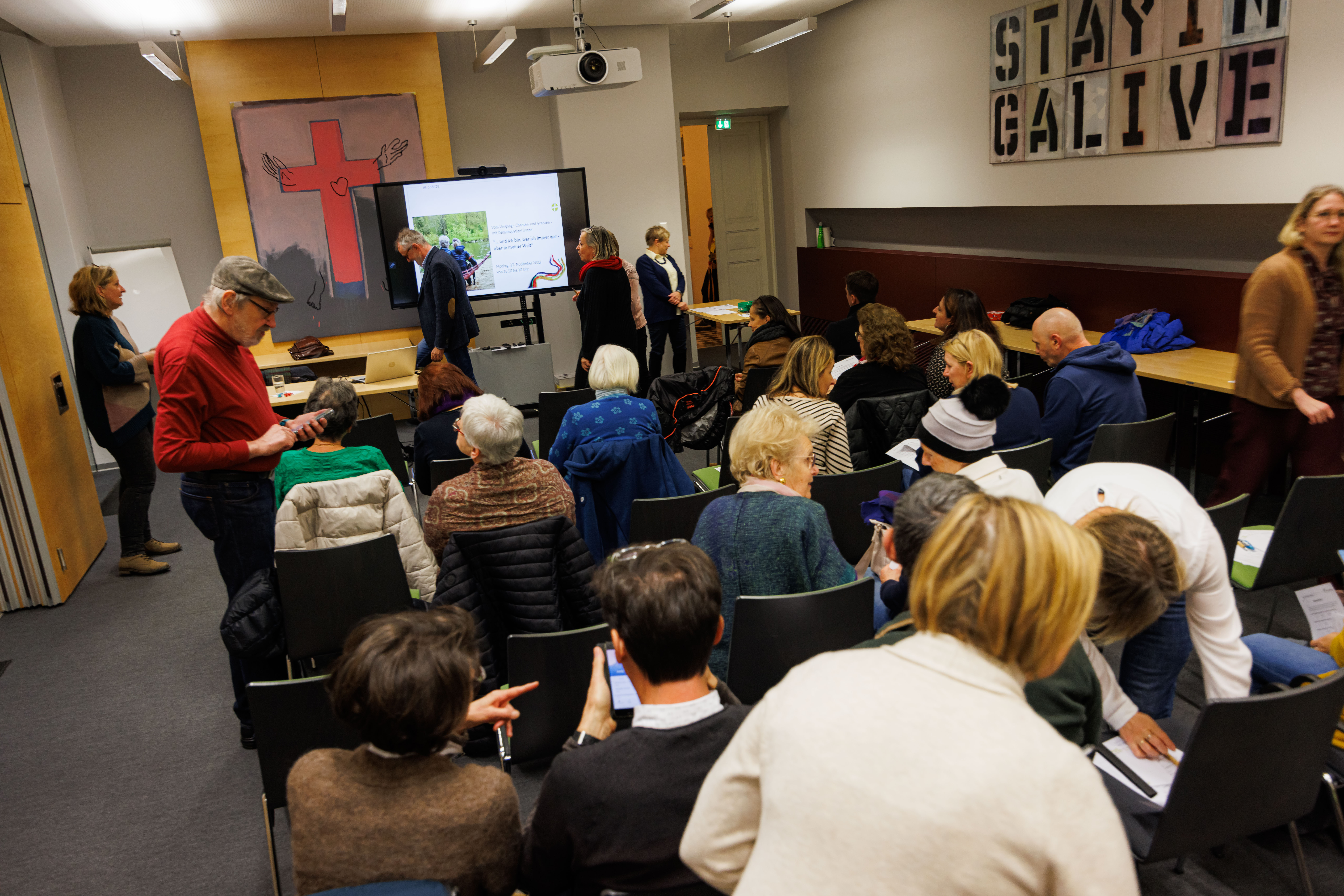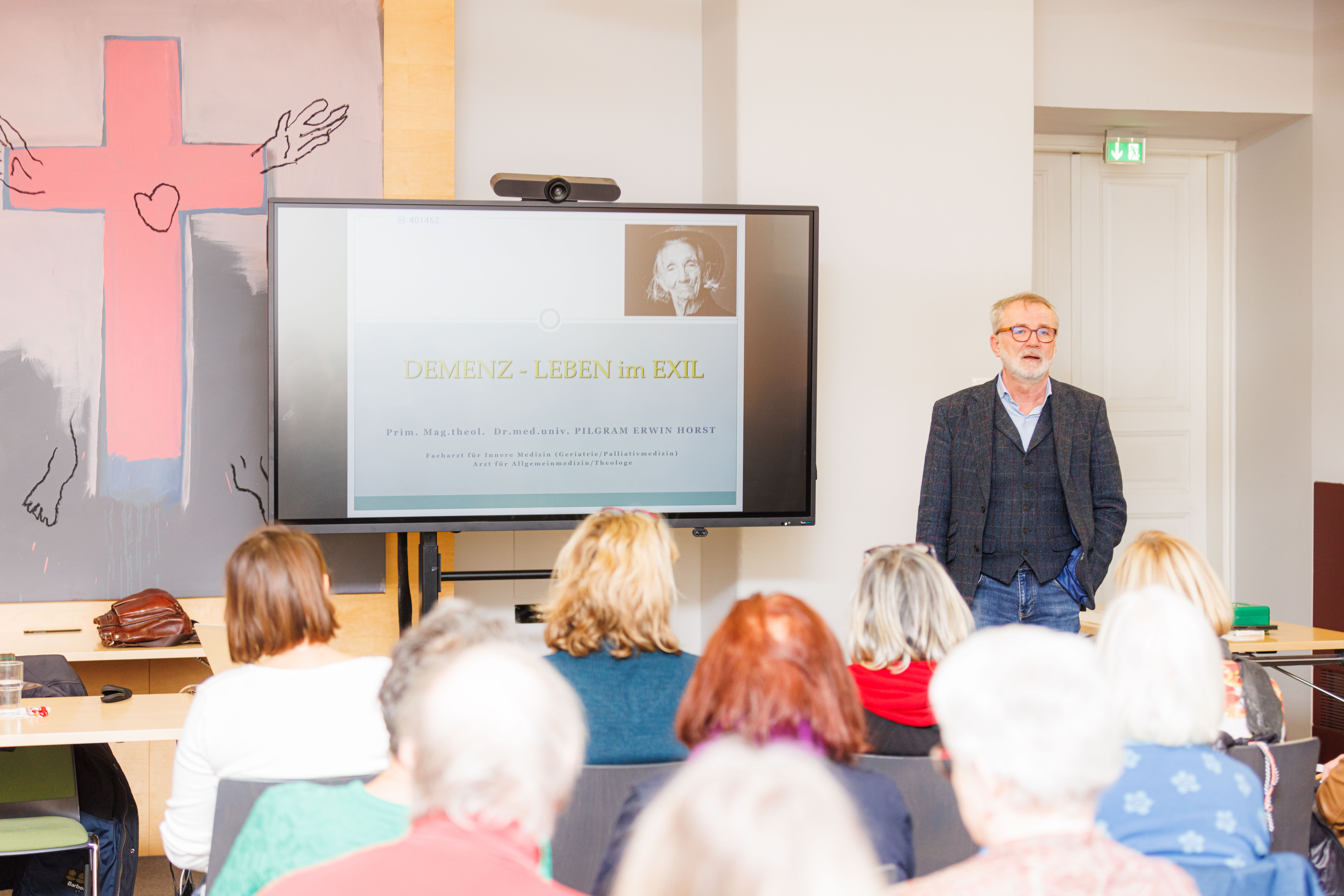 Dr. Erwin Horst Pilgram, Primarius der Abteilung Medizinische Geriatrie und Hospiz und Stellvertreter des Ärztlichen Leiters der Albert Schweitzer Klinik, vermittelte den Anwesenden am Montag, 27.11.2023, im bischöflichen Ordinariat in einem 1 1/2-stündigen Vortrag grundlegendes Wissen über die Diagnose Demenz.
