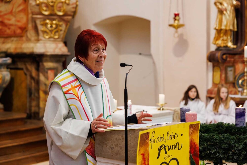 Am Sonntag, dem 15. Dezember 2024, verabschiedete das Haus der Frauen seine langjährige Leiterin Anna Pfleger in einem feierlichen Rahmen in der Kirche von St. Johann bei Herberstein. Über 30 Jahre lang prägte Anna Pfleger mit Herz, Vision und Engagement das Bildungshaus, das sie unter dem Leitgedanken „Wir sind DAS Bildungshaus der Katholischen Kirche Steiermark mit Schwerpunkt Frauen“ zu einem lebendigen Ort der Begegnung und Inspiration formte.
