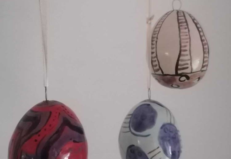 Kosten: € 35,00 Teilnahmebeitrag inkl. Kaffee-/ Teejause + Material- und Brennkosten € 5,00/Ei. Fertige Eiformen inkl. Brennen € 12,00/Ei
