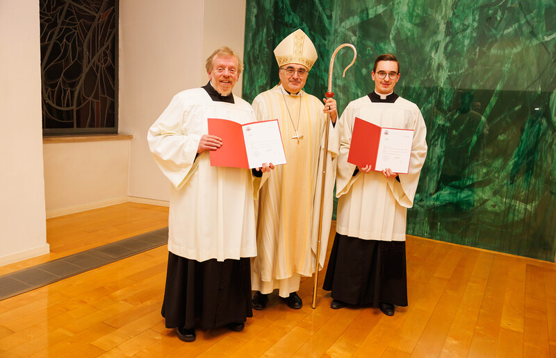 „Du willst Menschen, die dir folgen auf dem Weg, der Leben heißt.“ – In einem feierlichen Gottesdienst in der Kapelle im Priesterseminar am 8. Jänner wurden Herbert Tomaschek und Thomas Lang von Bischof Wilhelm Krautwaschl zum Lektoren- bzw. Akolythendienst beauftragt.