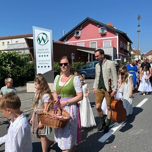 Ein gro­ßes Dan­ke­schön gilt allen, die mit der auf­wän­di­gen Vor­be­rei­tung der Blü­ten­tep­pi­che und den Diens­ten rund um das Fest das Brauch­tum um die Pro­zes­sion be­wah­ren.