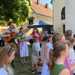 Danke allen Be­su­cher/­innen, die das Fest mit­ge­fei­ert haben und ein Dank auch im Namen der Kinder an Herrn Bürger­meister Partl, der die Kinder auf ein Be­loh­nungs­eis ein­ge­la­den hat.