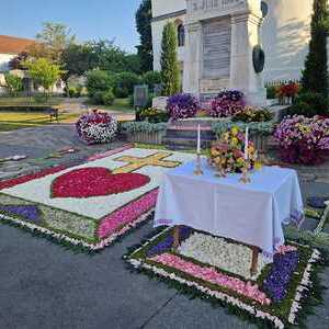 An Fron­leich­nam fei­ert die ka­tho­li­sche Kir­che, dass Jesus in ge­weih­tem Brot und Wein auch nach sei­nem Tod ge­gen­wär­tig ist. Vie­ler­orts fin­den Pro­zes­sio­nen statt, Kin­der streu­en da­bei Blüten auf dem Weg und an den Feld­sta­tio­nen wer­den wun­der­schö­ne Blü­ten­bil­der vor­be­rei­tet. So auch bei uns in Gam­litz...