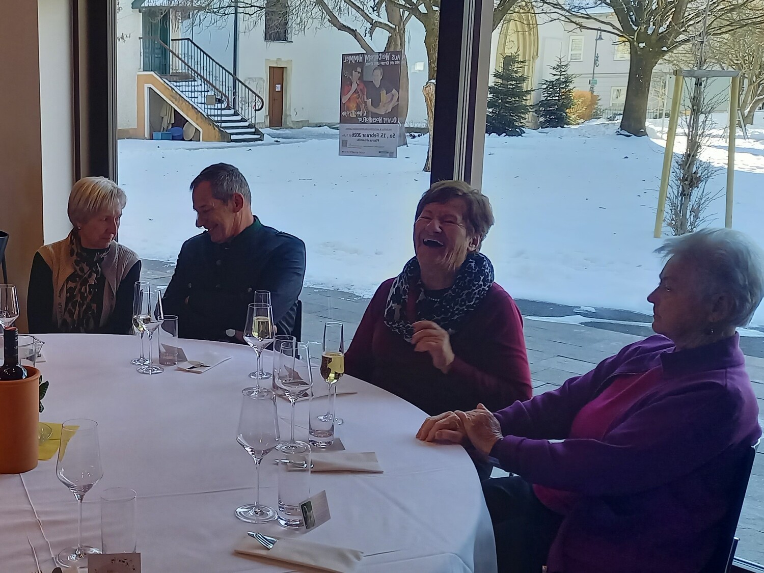 Gleich zur Begrüßung wurde mit einem Gläschen Sekt auf die gute Zusammenarbeit angestoßen und bei einer stimmungsvollen steirischen Hintergrundmusik ließ es sich gleich angeregt plaudern. Pfarrer Schneeflock betonte in seiner Ansprache, wie wichtig "JEDER, JEMAND UND IRGENDJEMAND" ist und bemühte sich, alle Anwesenden namentlich hervor zu heben.