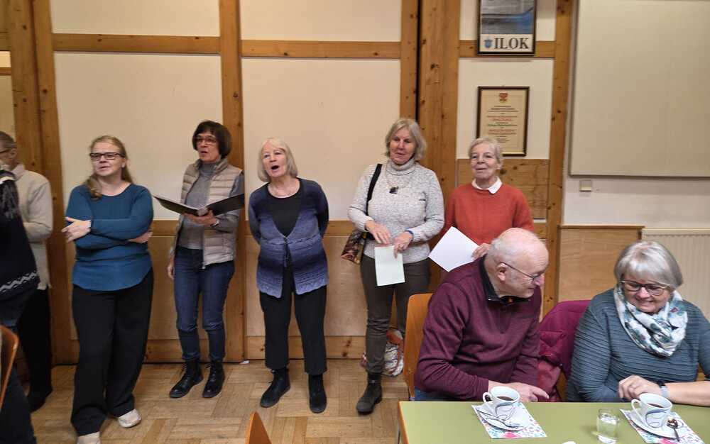Nach dem musikalisch wunderbar umrahmten Gottesdienst begrüßten die KirchenchorsängerInnen  die BesucherInnen "mit an schean G'sang" und luden zu einem gemütlichen Beisammensein im Pfarrsaal ein.