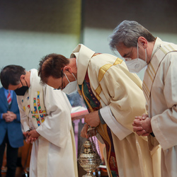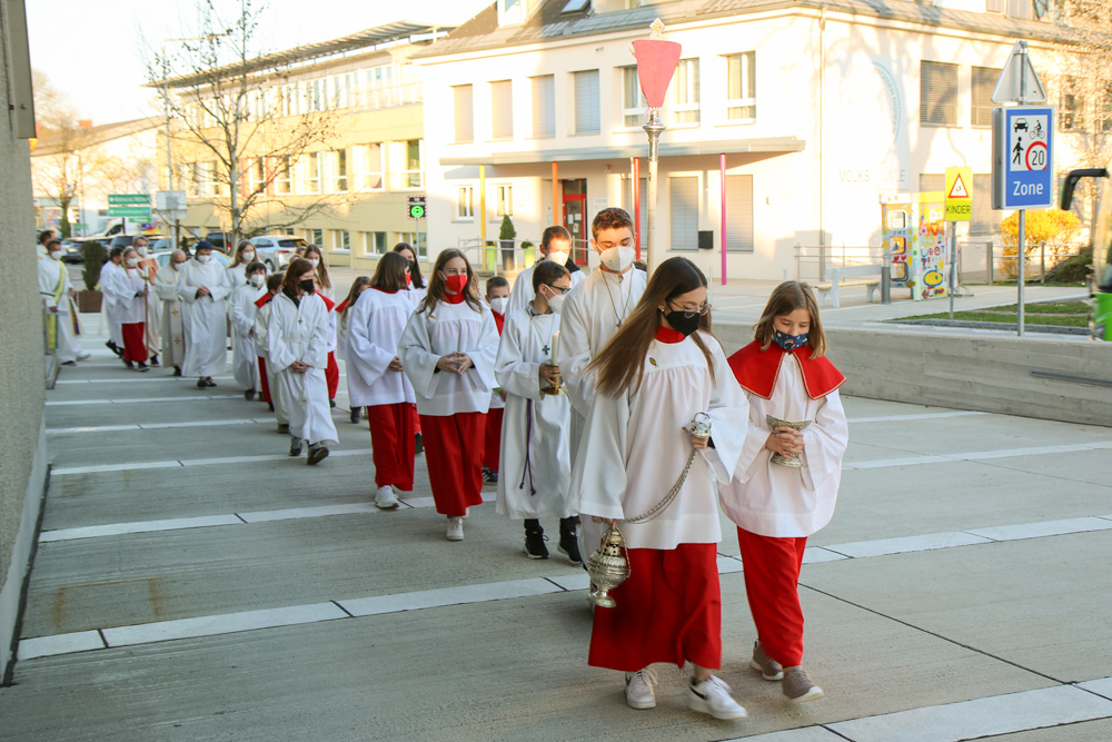 Am Gründonnerstag feierten wir eine gemeinsame Seelsorgeraum-Messe in der Pfarrkirche Lieboch. Mit dabei waren drei Priester, drei Diakone, drei Pastoralreferentinnen, über 20 Ministranten und verschiedene weitere Dienste aus unseren sechs Pfarren.